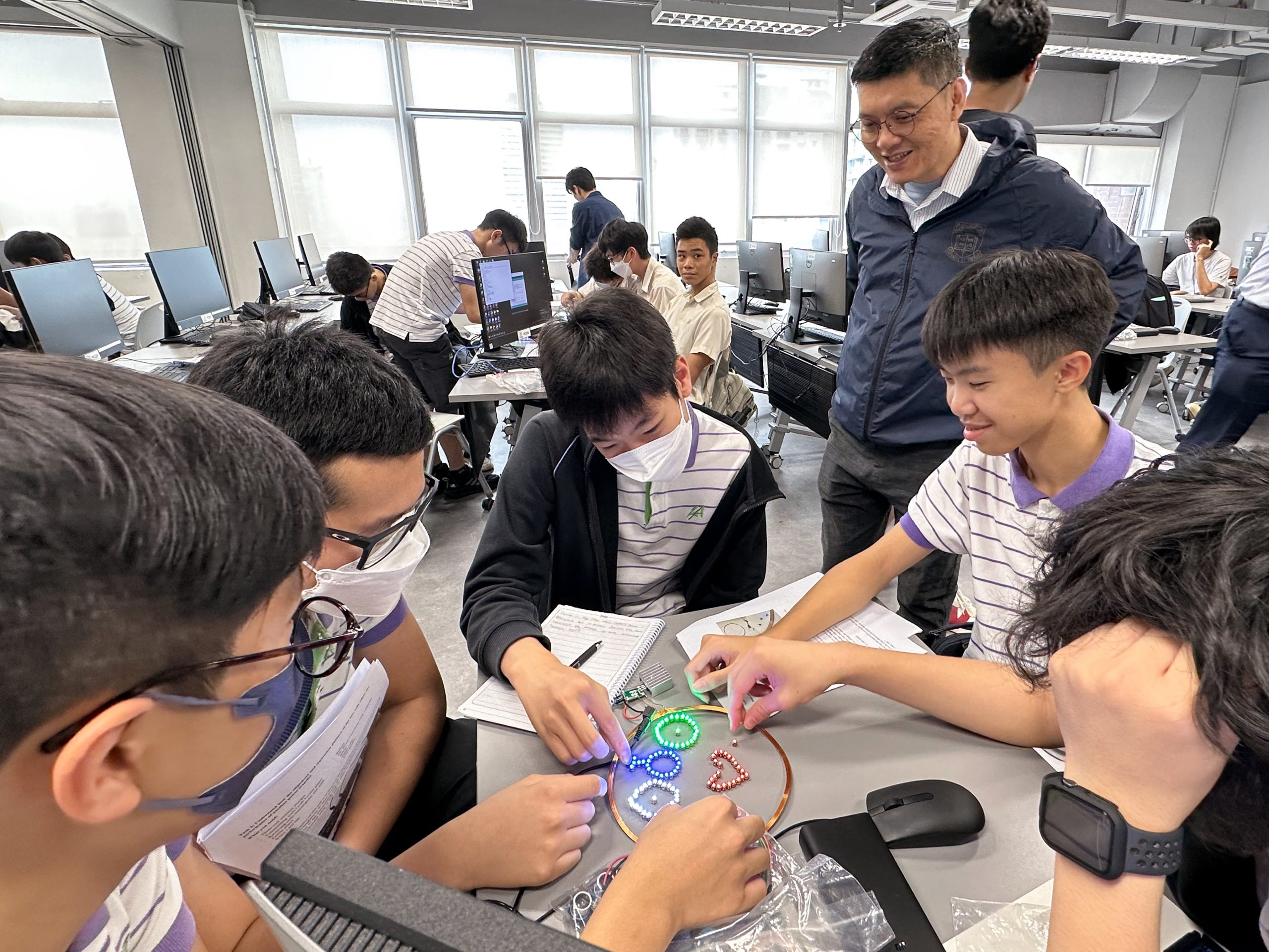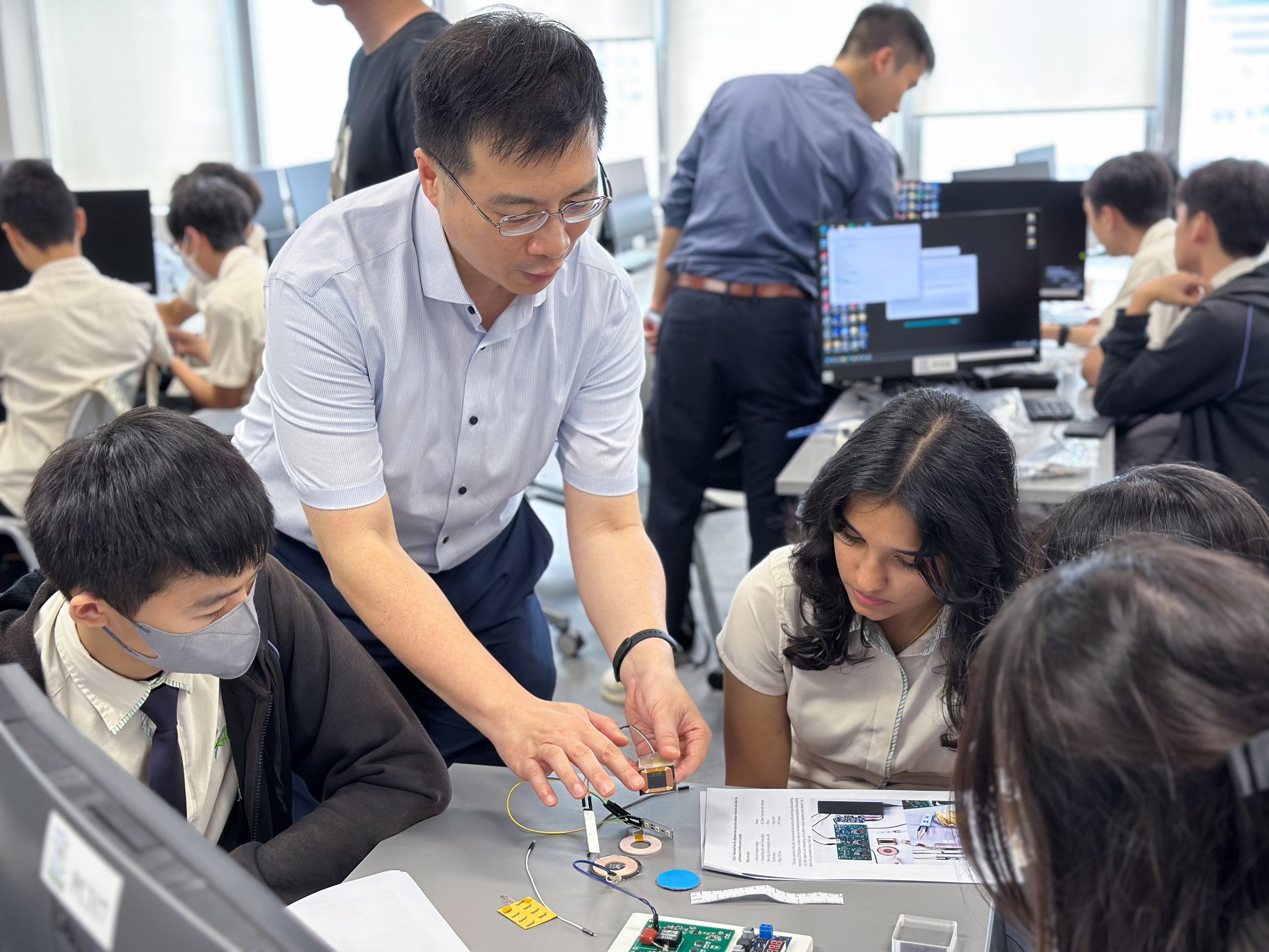 As part of the ongoing secondary school outreach programs supported by the Faculty of Engineering and Tam Wing Fan Innovation Wing, we invited a delegation of teachers and students from ELCHK Lutheran Academy (ELCHK-LA) to visit HKU on May 3, 2024. This event commenced with a welcoming remark by Prof. KW Chow, Associate Dean of Engineering, which is followed by an interactive workshop and collaborative activities based on the latest technologies of wireless power transfer. The main objectives are to inspire and arouse students’ interests in science and technology alongside promoting HKU Engineering. The workshop provides a structured and immersive environment where students can engage in hands-on, experiential learning. In addition to the workshop, we also arranged two guided tours for them, one at Tam Wing Fan Innovation Wing One followed by another at imseCAVE HIS Lab.