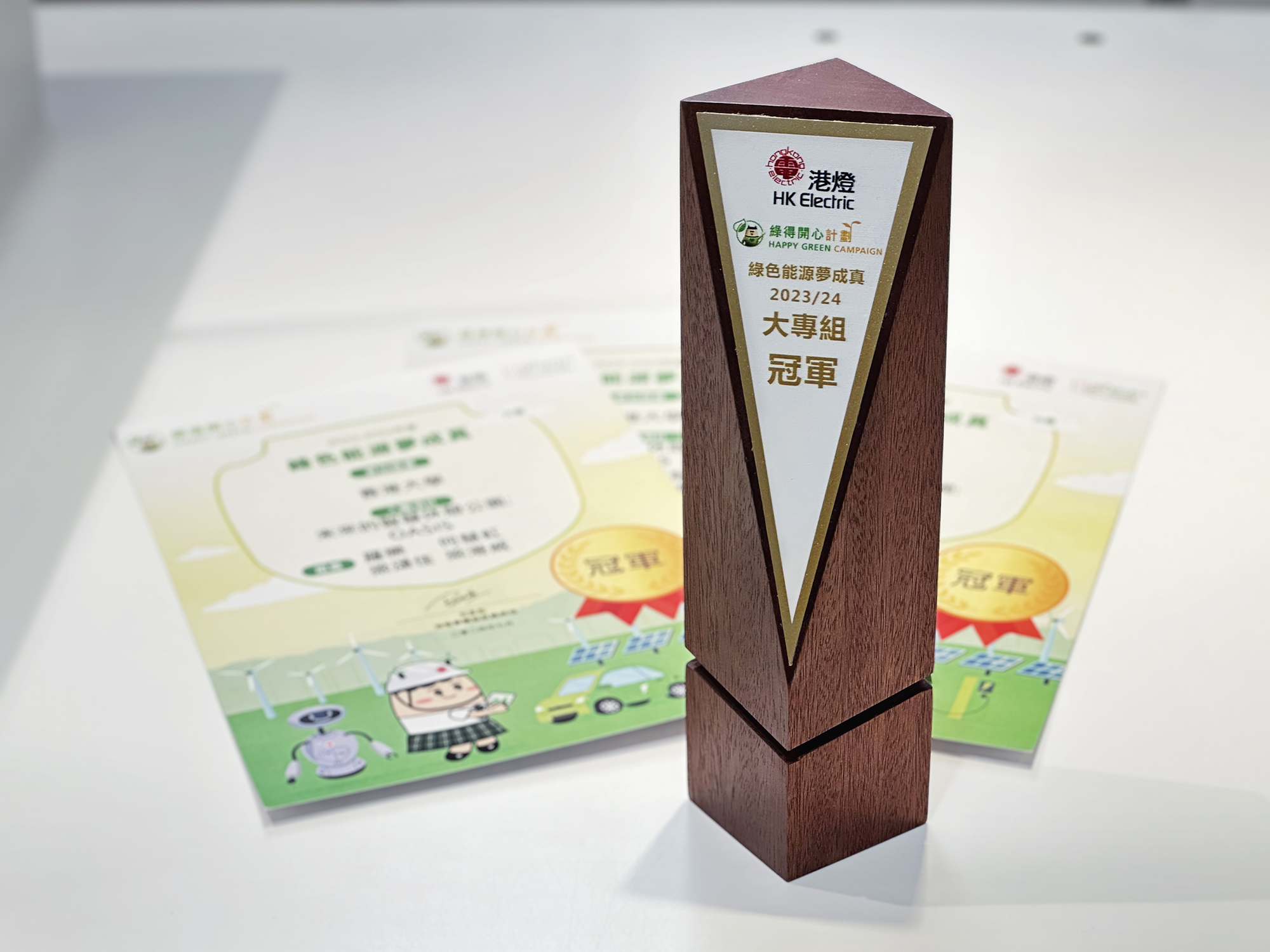 Congratulations to Mr. Lo Lok, Miss He Wai Hung (Fiona), and Mr. Leung Chung Kai (John), ELEC3848 students in the Department of Electrical and Electronic Engineering at The University of Hong Kong, for winning the Champion Award in the Green Energy Dreams Come True Competition 2023/24 (Tertiary) organised by the Hong Kong Electric Company Limited.