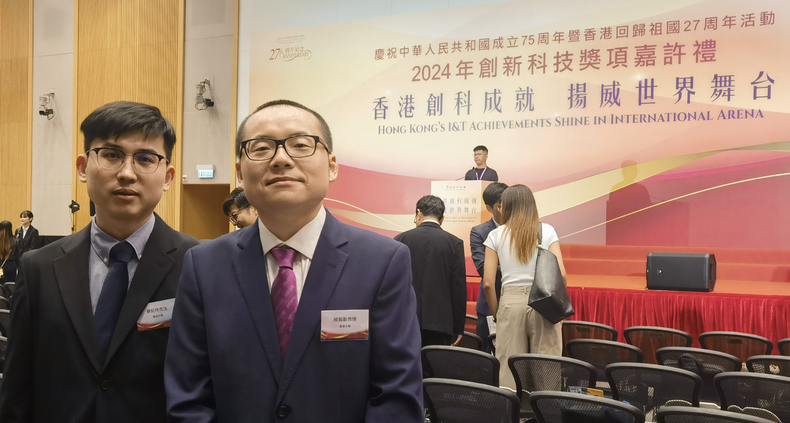 Congratulations to Professor Zhiqin Chu and Professor Kevin Tsia from the Department of Electrical and Electronic Engineering at The University of Hong Kong for their remarkable success in winning the Gold Medal at the 49th International Exhibition of Inventions of Geneva. They also had the honour of representing the University of Hong Kong at the reception.
