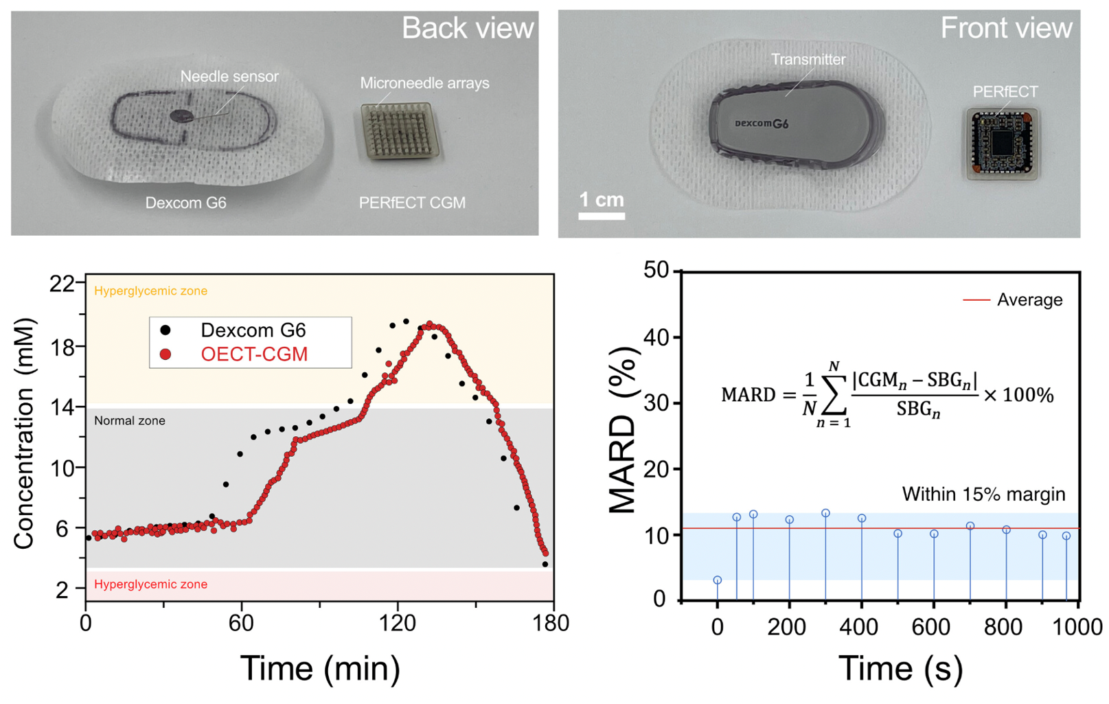 Figure 2. The size and reliability of the OECT-CGM.