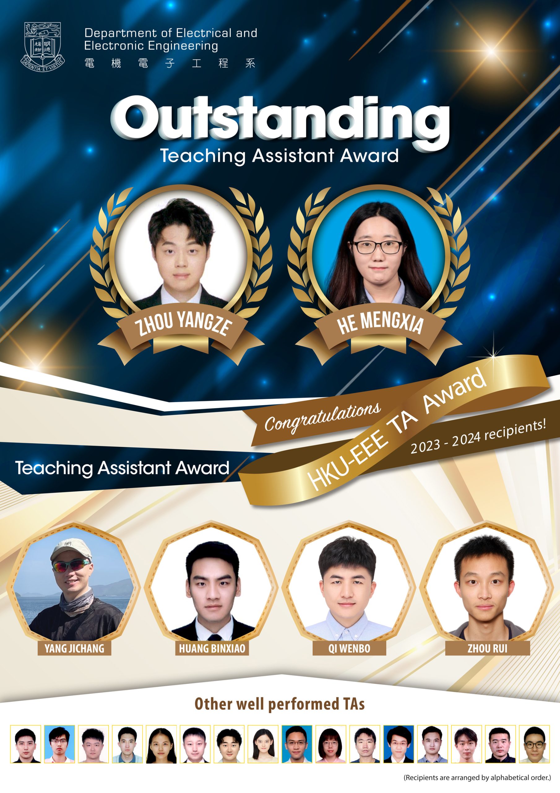 On September 20, 2024, the Award Presentation Teaching Assistant Award Ceremony 2023-2024 was successfully held to celebrate and recognize the teaching assistants for their outstanding teaching support at the Department of Electrical and Electronic Engineering (EEE), The University of Hong Kong (HKU).