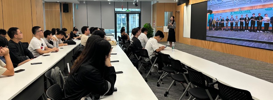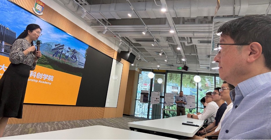 ^After visiting ByteDance located in Nanshan, Shenzhen, the class moved to Qianhai and visited the HKU facilities iDendron@Qianhai, where the research team commercialises their technologies and research in the Greater Bay Area.