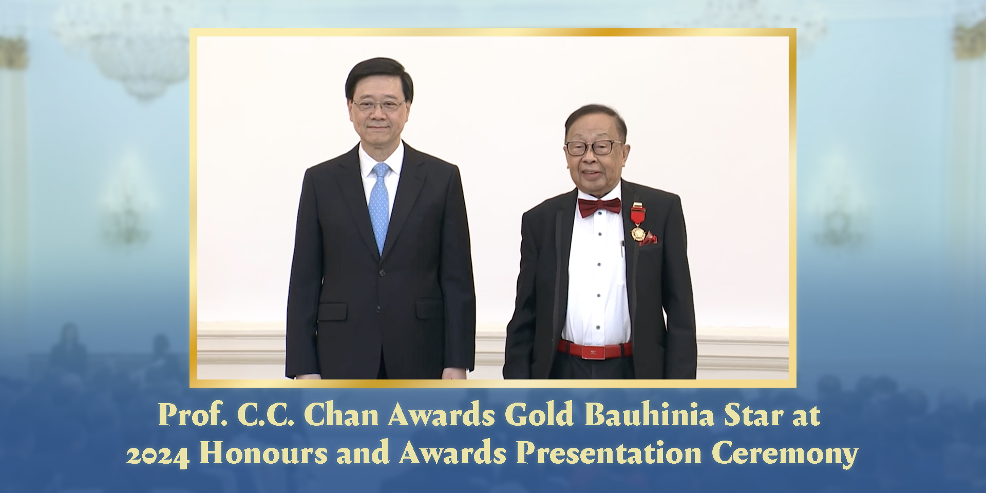 Heartfelt Congratulations to Prof. C.C. Chan, the esteemed Honorary Professor at The University of Hong Kong, for his remarkable success in awarding the Gold Bauhinia Star at the 2024 Honours and Awards Presentation Ceremony!