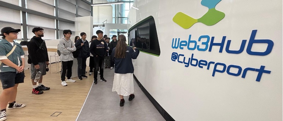 ^ Students visited the Web3Hub to appreciate the application of Web3.0 in blockchain and metaverse.