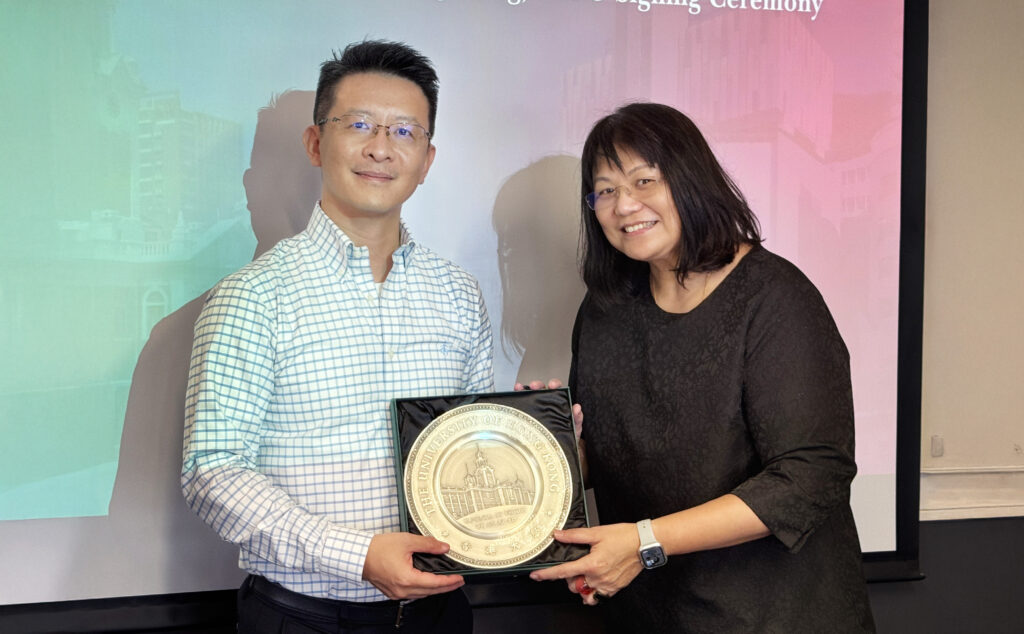 The MoU was signed by Professor Kaibin HUANG (left), Head of the HKU-EEE Department, and Ms. Pamela YOONG (right), Principal of SISHK.