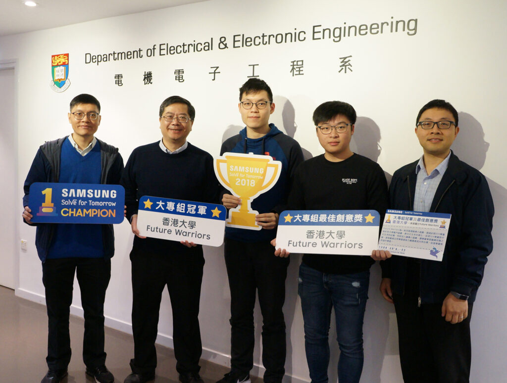 From Left to Right: Dr. Vincent Tam (supervisor), Prof. KT Chau (head of Department) Chi Ping Desmond Wong, Kwong Yat Felix Wong, Prof. Edmund Lam (CE programme director)