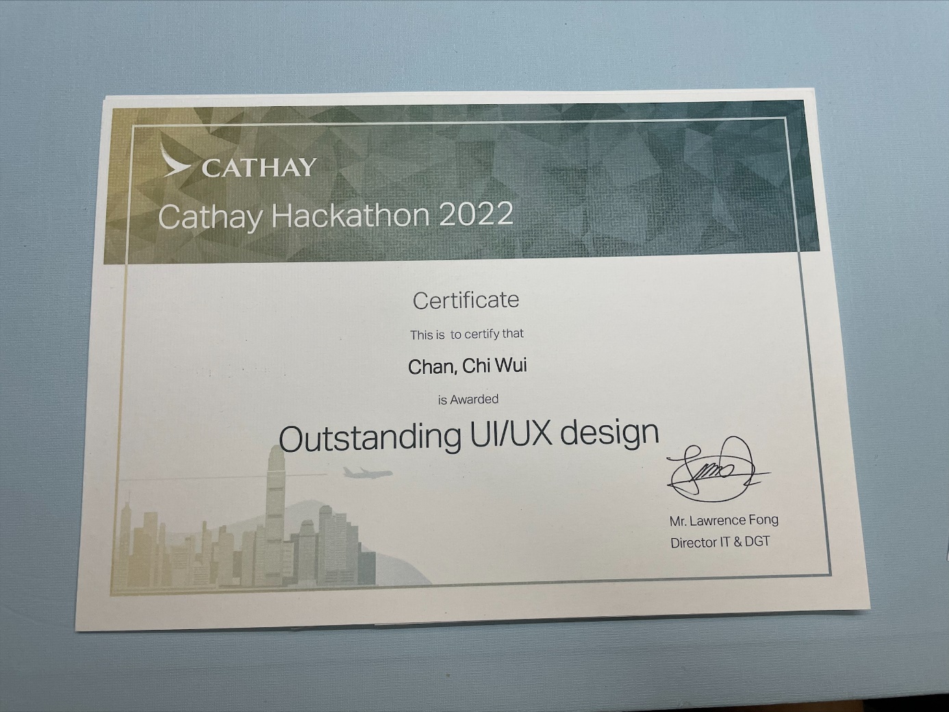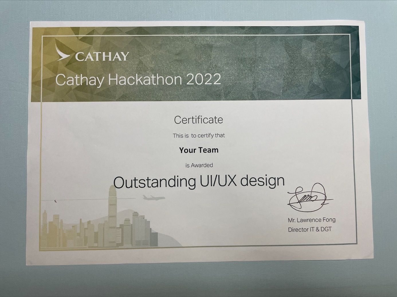 Our Computer Engineering students, Chan Chi Wui (MM, CE year3), Kwon Hee Jun (Joshua, CE year5) and Wan Kwong Fai (Kenny, CE year3) participated in the “Cathay Hackathon 2022” that co-organized by Cyberport and Cathay Pacific on 19-20 November 2022. With their innovative ideas, their team, Tripify, has been awarded the “Outstanding UI/UX design” in the hackathon!