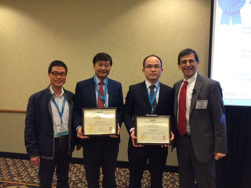 Professor Ron Hui (second from the left) and Dr. Wenxing Zhong (second from the right) received the 1st Place IEEE Transactions Prize Paper Award from the IEEE Power Electronics Society. Their paper was ranked as the best from a total of 654 papers published in the IEEE Transactions on Power Electronics in 2015.”