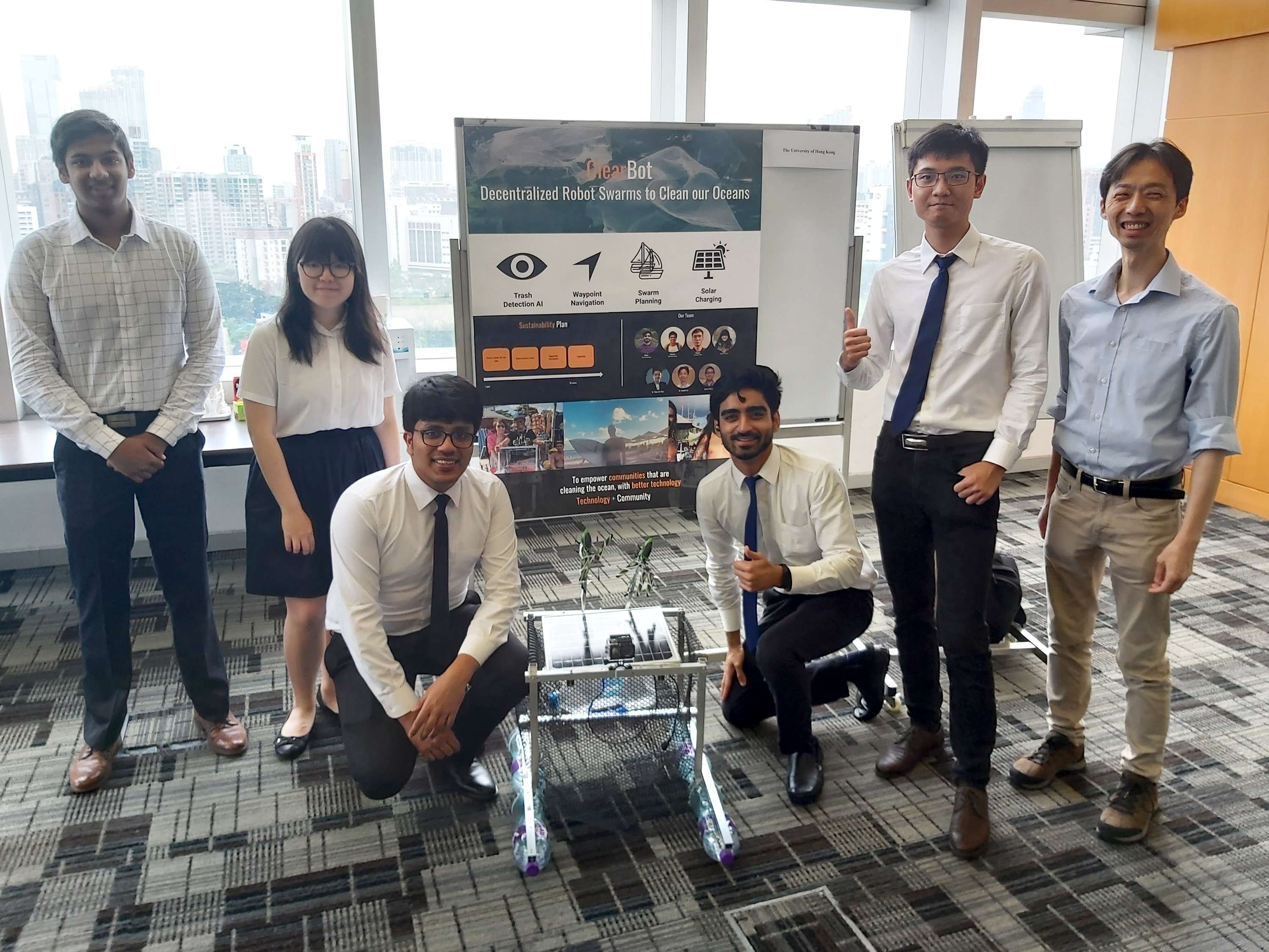Congratulations to HK team “ClearBot”! They just got the 1st runner-up at the Student Competition of 2019 Global Grand Challenges Summit (GGCS) in London. The HKU team was coached by Dr. Hayden K H So of Department of Electrical and Electronic Engineering and it was comprised of Sidhant Gupta (BEng(CE)-graduate), Angel Woo Chung-yu (BEng(CompSc)) , Utkarsh Goel (BEng(CompSc)), Ahmed Abbas Alvi (BEng(ME)) and Ma Jiacheng (BSc(ActuarSc)). The HKU team was joined by Padmanabhan Krishnamurthy from the Hong Kong University of Science and Technology and Theresa Yip Man Yee from the City University of Hong Kong to form a Joint University Team of Hong Kong under the direction of Dr. So to compete as one of the China teams on the world stage.