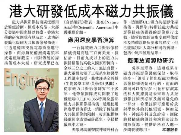 SingTao / Headline: 港大研發低成本磁力共振儀