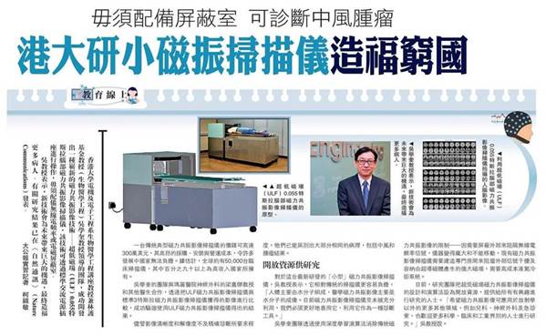 SingTao / Headline: 港大研發低成本磁力共振儀