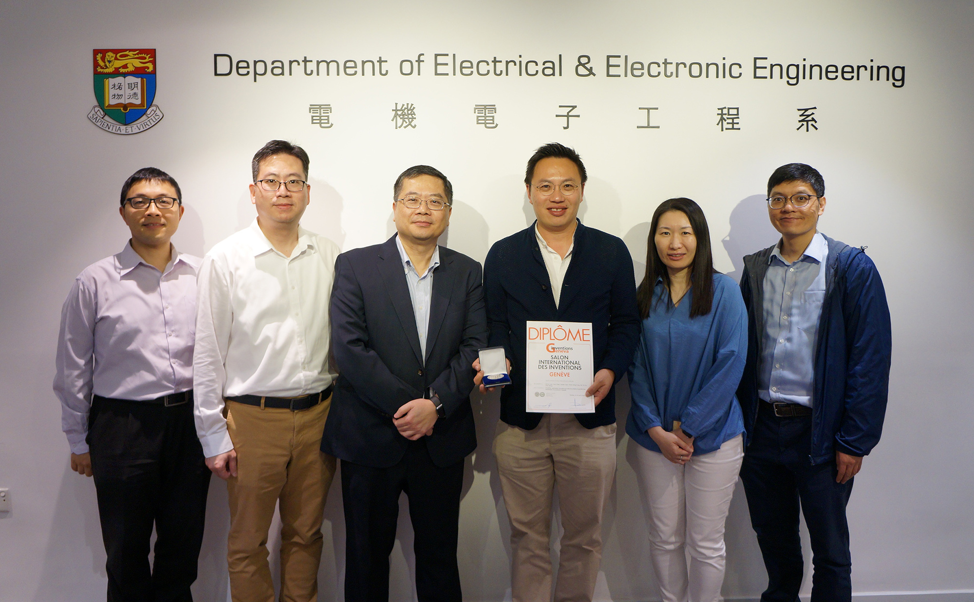 (Right to left) Prof. E. Lam, Dr. J.C.H. Yuen, Prof. K.T. Chau (Head of Dept.), Mr. Sunny Lam (Lam Foundation), Dr. K.S. Lui, and Dr. V. Tam