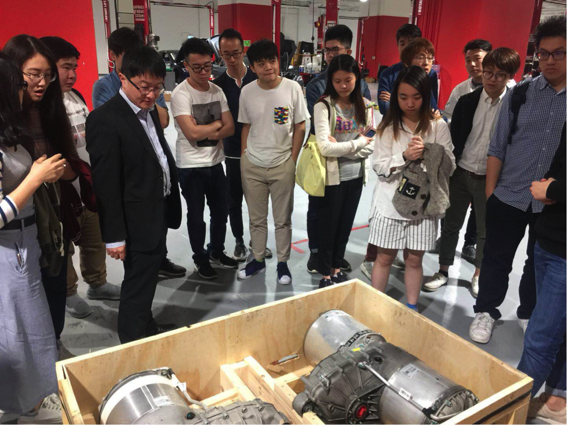 A group of M.Sc students in EEE and Energy Engineering visited the Tesla Service Centre in Tsuen Wan on 24 March 2018. They are taking a course “EMEE6002 Sustainability and Climate change”. Learning the latest technologies on electric vehicle, renewable energy and smart grid are the key solutions to solve the climate change problem.