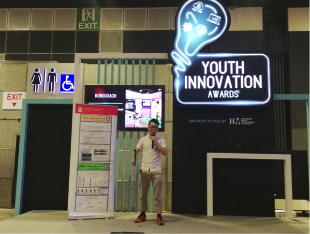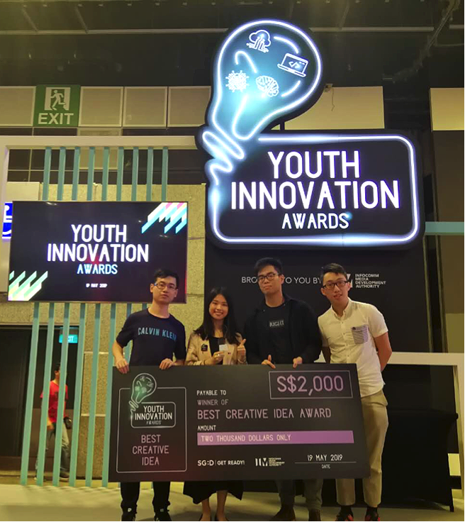 The Robocoach project members (from left) Oliver Xu, Carol Chen, Baoheng Zhang and . Louis Chan received the Most Creative Idea Award with a cash prize of SG$2000