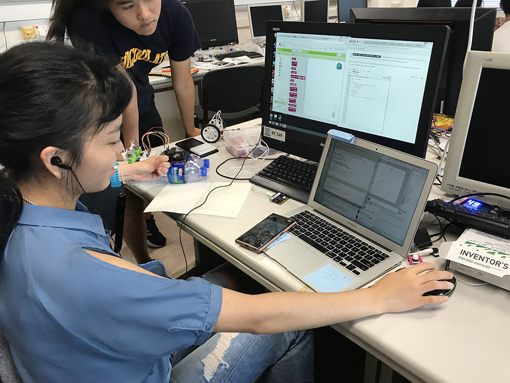 Students are formed into teams to produce their own gadgets built with electronic components from littleBits, Microbit and Raspberry Pi: