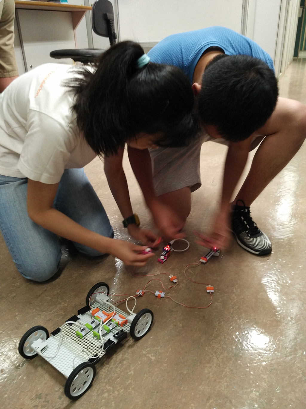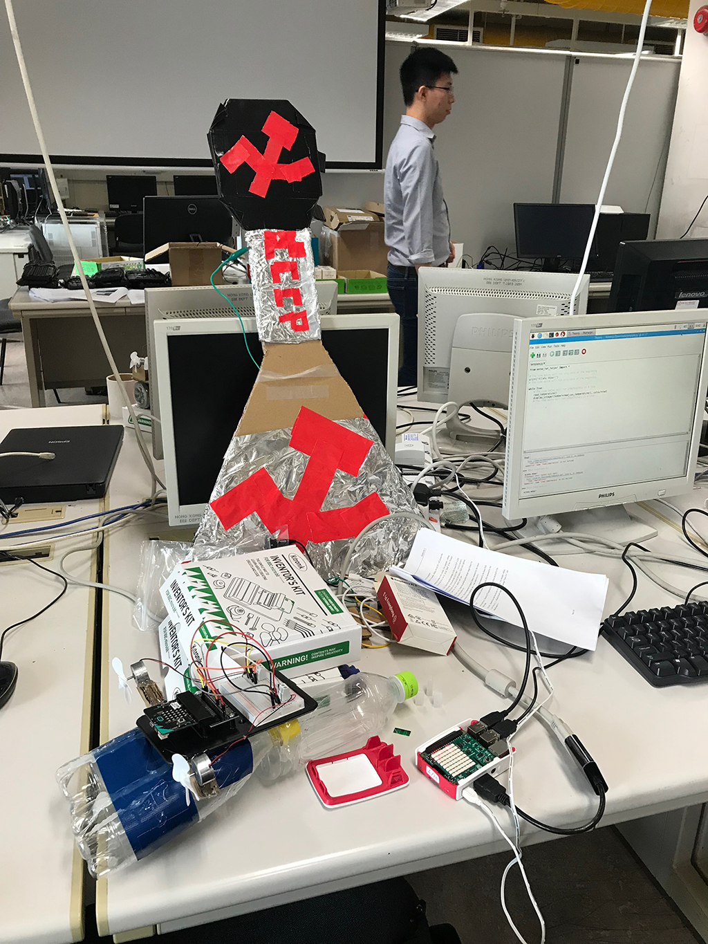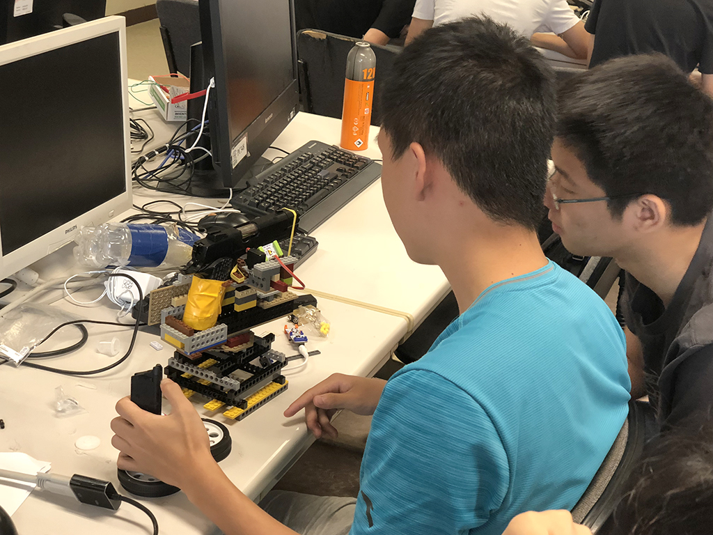 Students are formed into teams to produce their own gadgets built with electronic components from littleBits, Microbit and Raspberry Pi: