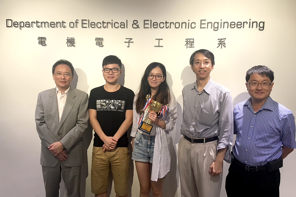 From left: Prof. Victor Li (Head of EEE), Mr. Pan, Kangbom (MSc EEE 2016), Ms. Lin Rui Lamry (MSc EEE 2016), Prof. SC Chan (MSc EEE Program Director), Dr. Wilton Fok (Project Supervisor)
